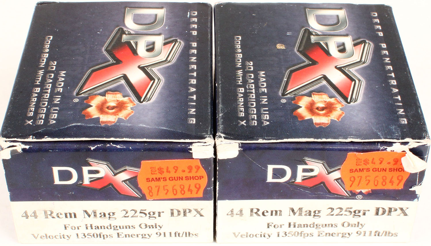 Lot of 2 Corbon, DPX, 44 Rem Mag, 225 Grain DPX, FULL, 1pc. multi-colored box, box is solid, Ammo is excellent. Grade: Excellent ++ - Value: 10 to 50