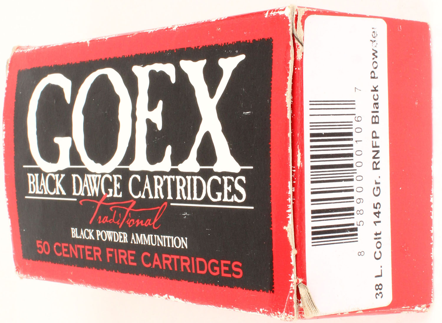 Goex Pinnacle, 38 L. Colt, 145 gr RDFP Black Powder, Full, 1pc. multi-colored box, box is solid, Ammo is excellent. Grade: Excellent - Value: 16 to 60