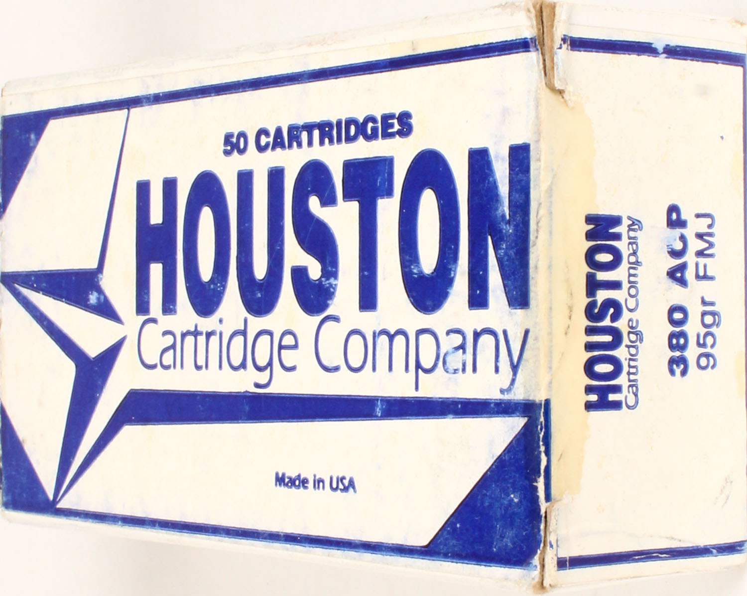 Houston, .380 ACP, 95 gr. FMJ, Full & Sealed, 1pc. multi-colored box, box is solid, Ammo is excellent. Grade: Excellent - Value: 16 to 60