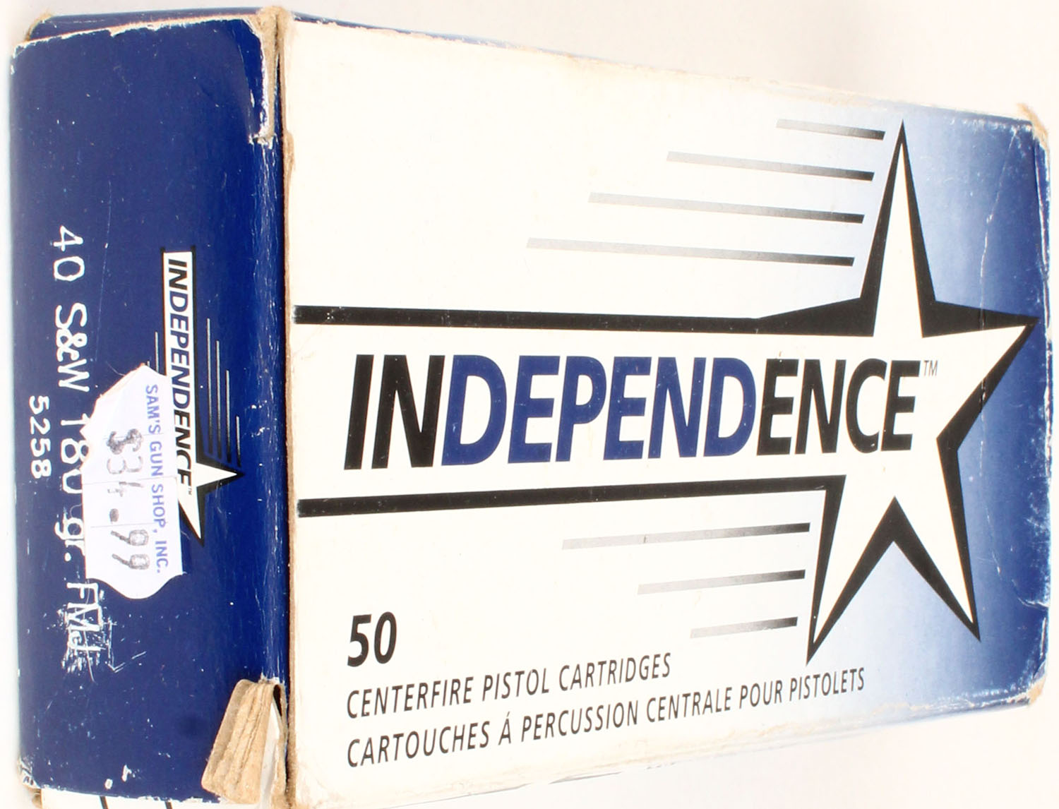 Independence, .40 S&W, 180 gr. FMJ, Full, 1pc. multi-colored box, box is solid, Ammo is excellent. Grade: Excellent - Value: 20 to 80