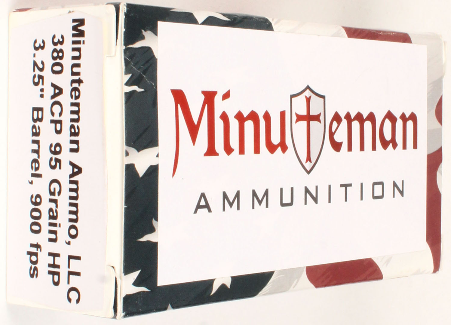 Minuteman ammo, .380 ACP 95 gr. HP, Full, 1pc. multi-colored box, box is solid, Ammo is excellent. Grade: Excellent - Value: 16 to 50