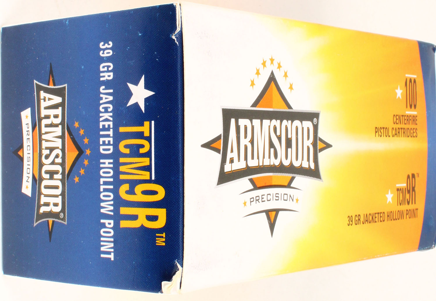 Armscor, 22 TCM9R, 39 Grain JHP, Full, 1pc., Multi-colored box, box is solid with great color, Ammo is excellent. Grade: MINT - Value: 20 to 80