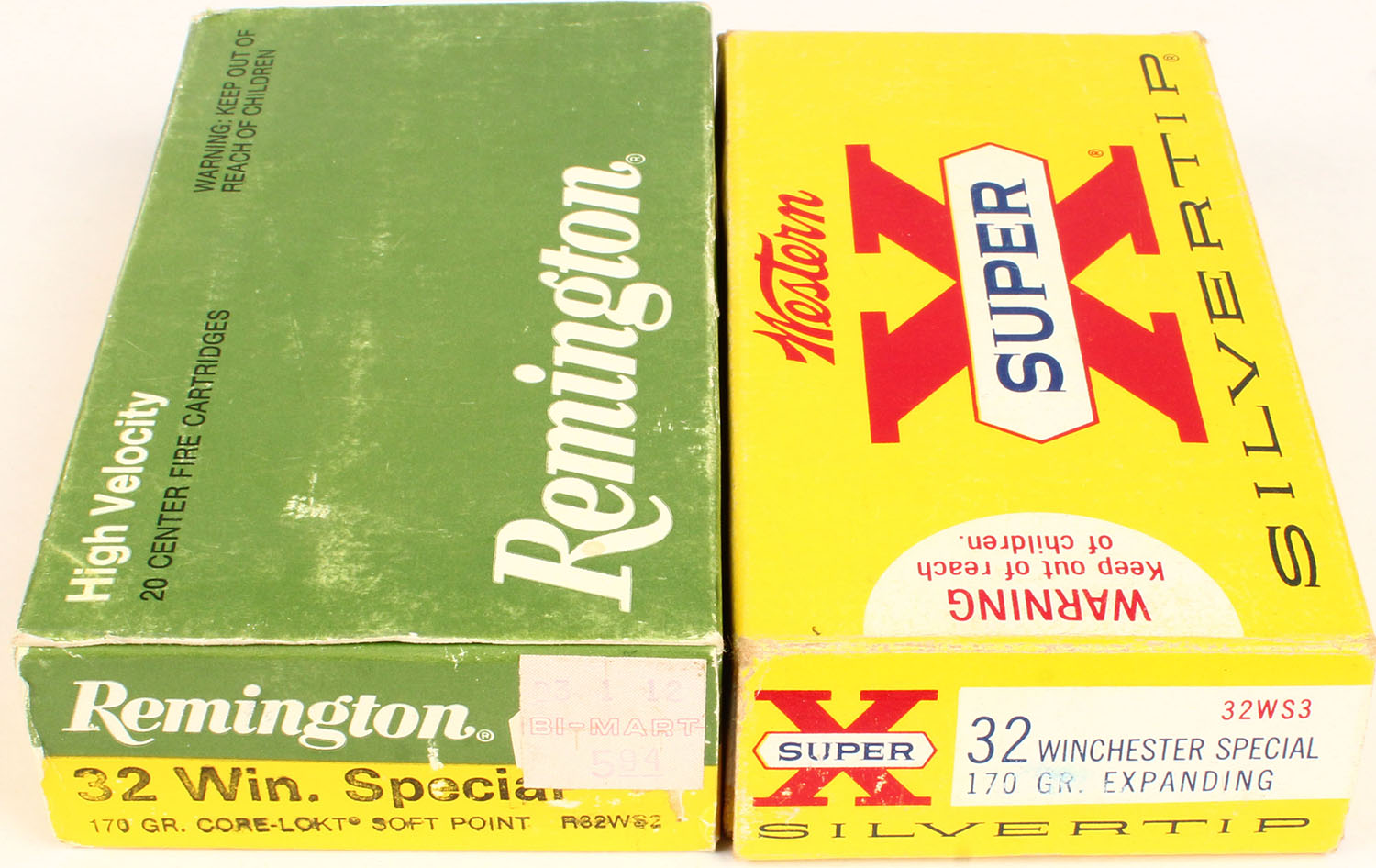 Lot of 2 .32 Win. Spl boxes, Silver tip box has 17rds, the Remington is full. Grade: Excellent - Value: 16 to 50