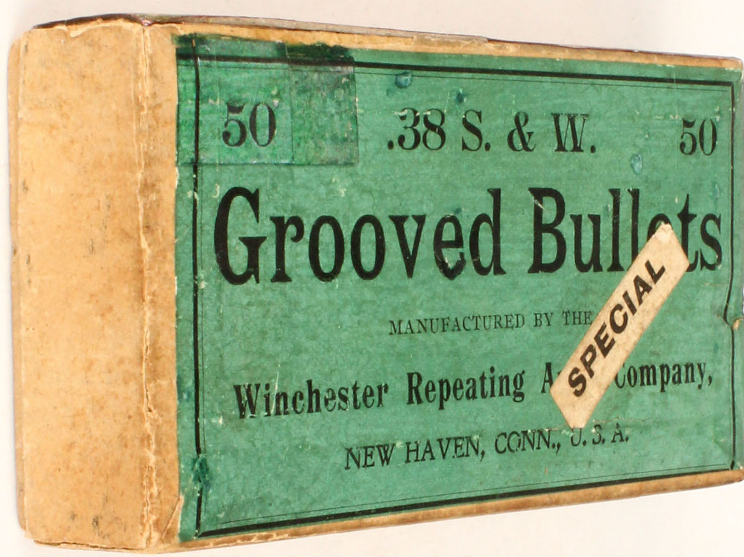 | Winchester, .38 S&W, Grooved Bullets, Full, 2pc. Buff box with ...