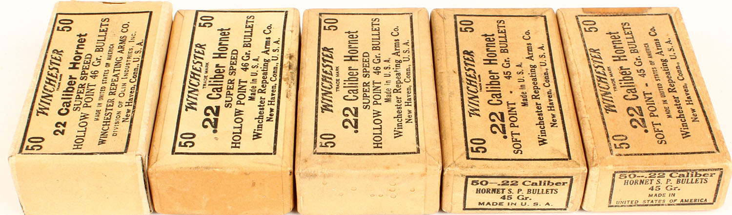 Lot of 5 Winchester Bullet boxes, see photo for cal., 2pc., Full. Grade: Excellent - Value: 6 to 30