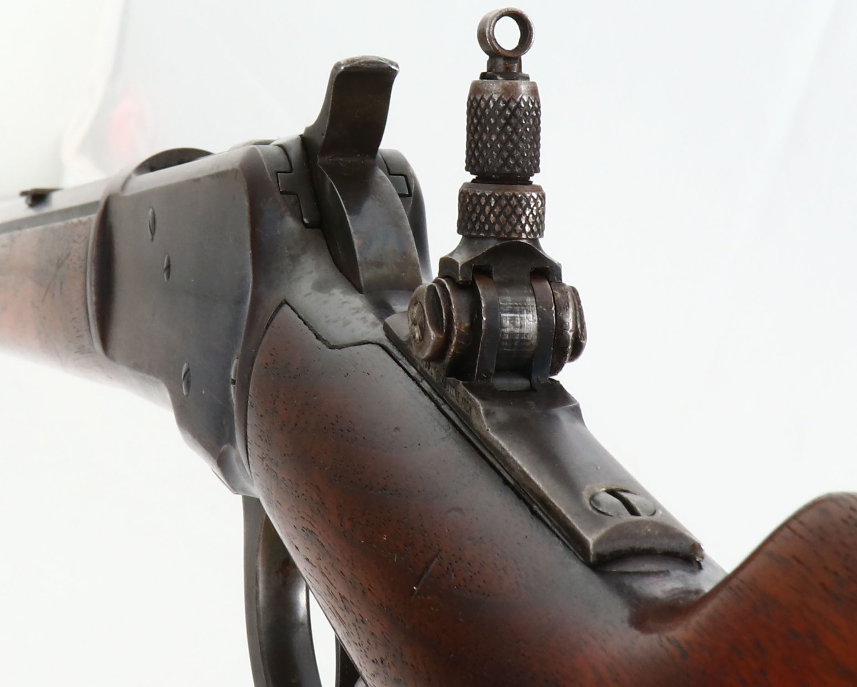 Winchester, Model 1892, CAL: 38 WCF, MFG: 1904, SN: 32349, Lever Action Rifle, 24 1/4'' Octagon barrel. Button mag. The original straight grip wood stocks are excellent, with wonderful & unusual grain, particularly on the stock. There are several minor contusions, scrapes & scratches to the original finish. The original metal finish has aged & toned to an even plum brown patina, with 80% coverage on the barrel & a full coverage of the same toned but thin finish on the receiver. Bore is excellent. The rifle is fitted with a Marble flip-up tang sight, while the barrel holds a Lyman folding two leaf rear sight & a Lyman half-moon ivory bead blade front sight. Buttstock carries a smooth crescent metal buttplate.Smooth tight action. Comes with a Cody Winchester Factory Records look-up sheet, which confirms dates & configuration. A very nice original example,nicely configured, with unique features & special order upgraded sight package. FFL or C&R Req. - Value: 3500 to 5000