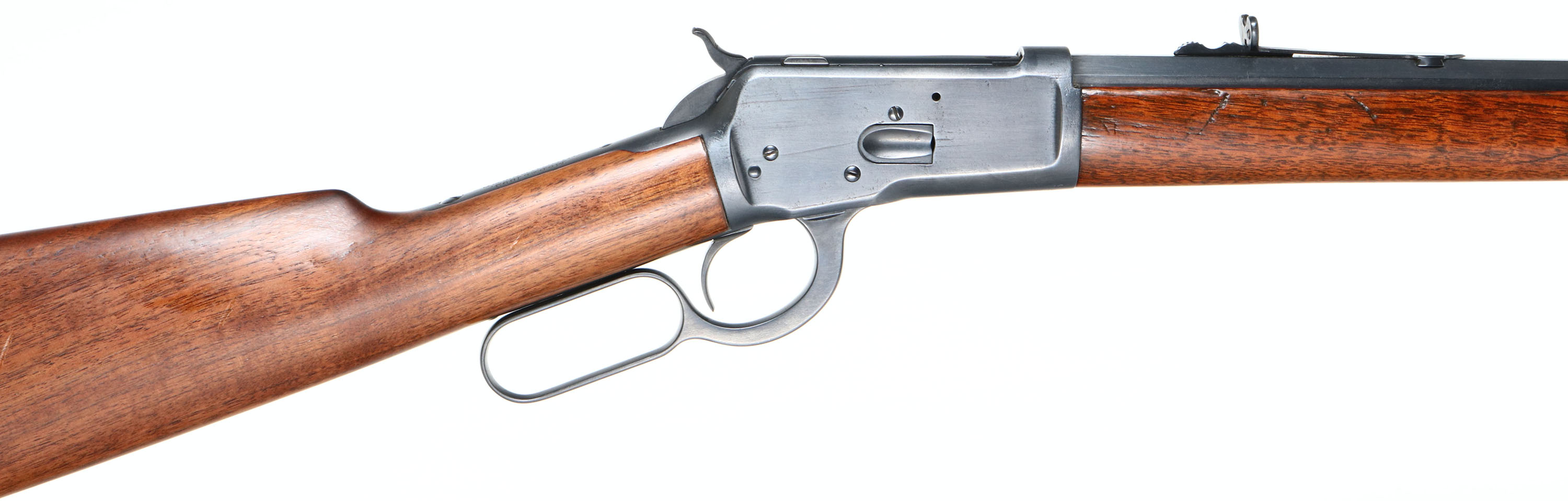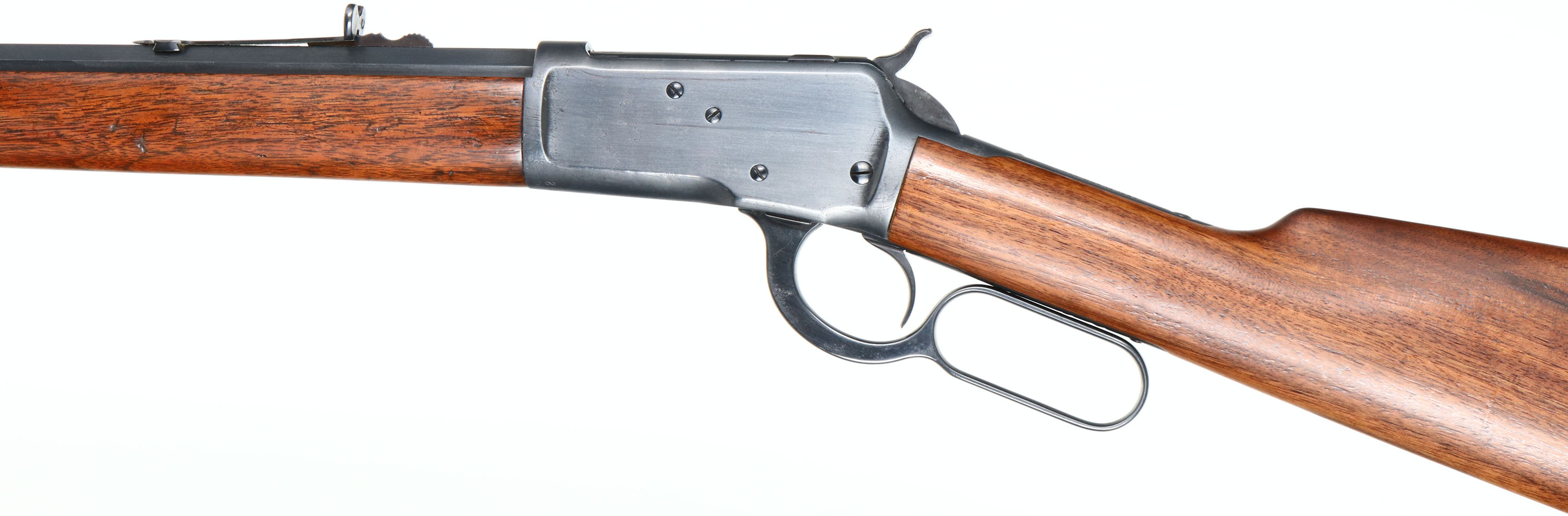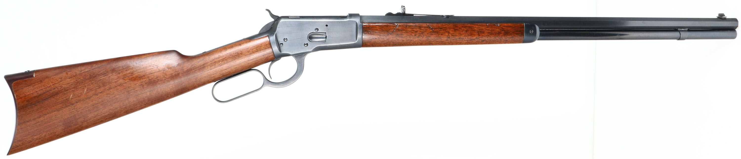 Winchester, Model 1892, CAL: 44 WCF, MFG: 1897 (Antique), SN: 75982, Lever Action Rifle, 24 1/4'' Octagon barrel. Full mag. The original straight grip wood stocks are excellent & solid. The stock has been lightly sanded & refinished, while the forend carries the original finish, with the added layer of additional finish. There are a number of light dings & scratches on the forend, with four 1/2'' line contusions on the right side of stock. Wood has a very nice overall appearance. The metal surfaces carry an applied black finish with 90% coverage, but has an orange peel texture in places & some pitting or abrasions under the finish. Bore is very good, with some areas of roughness amongst strong rifling. Barrel holds an adjustable rear sight & blade front sight. Buttstock carries a smooth crescent metal buttplate. A popular caliber in the 92, especially with cowboy shoot participants, which this rifle would likely be a good candidate.* Antique, No FFL Req. - Value: 800 to 1500