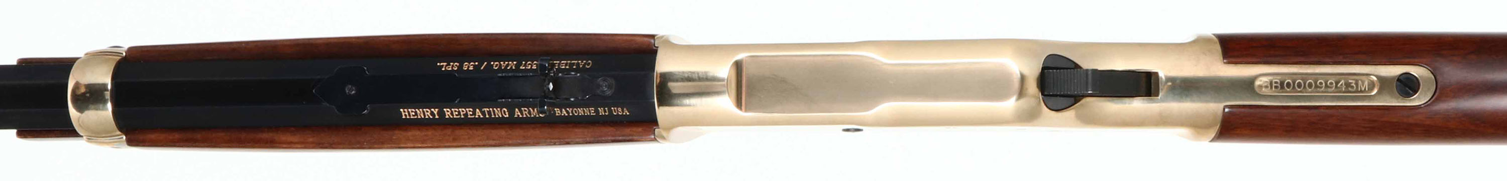 NEW BOXED, Henry Repeating Arms, Henry Big Boy, CAL: .357/38 SPL, MFG: Modern, SN: BB0009943M, Lever Action Carbine, 20'' Octagon barrel. Full Mag. The straight-grip stock & forearm are crafted of select American walnut accented with a brass barrel band & Henrys recognizable brass receiver. All have that crisp, smooth action that sets an authentic American-made Henry apart from other lever action rifles on the range & in the woods today.The original straight grip stocks are excellent. The metal blue finish rates 100% overall. The brass receiver & other parts are excellent. Bore is mint. Barrel carries factory sights. Buttstock carries a brass carbine style buttplate. Comes in original matching box, with paperwork. Basically NOS. A wonderful classic hunting rifle or heirloom. FFL Req. - Value: 1000 to 1500