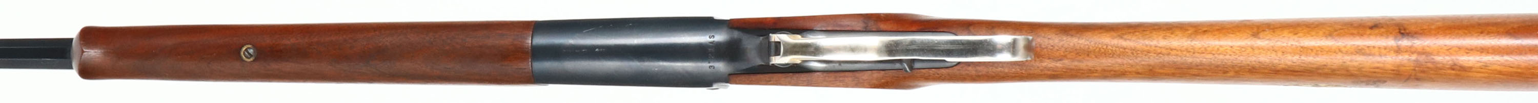 Savage, Model 1895, 75th Anniversary , CAL: marked 308 WIN, MFG: 1970, SN: 3721A5, Lever Action Rifle, 24'' Octagon barrel. The rifle celebrates the 75th anniverary of the 1895 rifle, which soon became the iconic 1899 & 99 rifles. Decorative gold washed engravings on the receiver. The straight grip walnut stocks are excellent. The wood retains the majority of the original finish, with a few minor handling marks or thin scratches. Schnabel forend & commemorative brass medallion embedded in the stock. The original metal blue finish on the barrel rates 95%, 90% on the receiver. Like the originals, round counter on the left side of receiver. Bore is excellent. The rifle is fitted with a flip-up leaf adjustable rear sight & brass blade front sight. Buttstock carres a brass crescent buttplate. The gold wash in the engravings has mostly worn away. The gold wash on the lever has also mostly worn to the nickeled underlayer. MFG 9,999 in 1970 only, but speculation is that less of them were actually produced & sold.* FFL or C&R Req. - Value: 600 to 1000