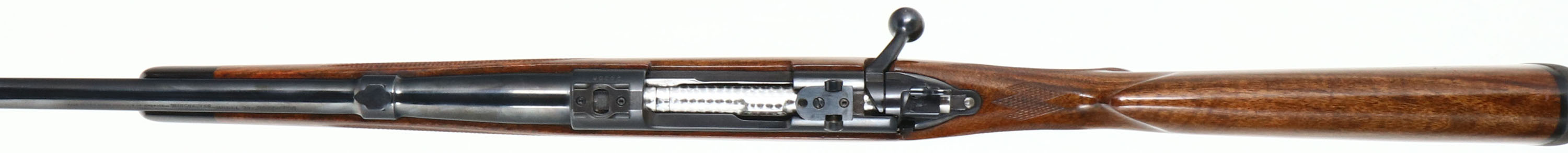 Winchester, Model 70, CAL: 30 GOV'T06 (30-06), MFG: 1940, SN: 30308, Bolt Action Rifle, 24'' tapered round barrel. Thethe custom deluxe checked & capped pistol grip walnut stock is excellent, with a darker wood forend tip. The stock has excellent grain, with sharp checkering & a few minor handling marks or light contusions to the finish. The original metal blue finish rates 97% overall. Bore is very good, with strong rifling. The receiver carries a couple of scope blocks, while the barrel holds a cutoff rear sight that functions as a blank & a front sight which has had the blade ground off so not to interfer with the optics of the previously mounted scope. The buttstock carries a Decelerator solid recoil pad. Sling provisions. A very nice cutomized rifle in a common hunting caliber. FFL or C&R Req. - Value: 500 to 1000