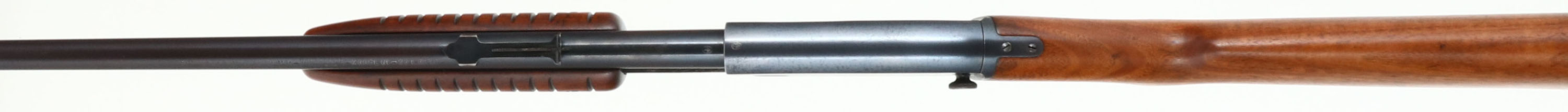 Winchester, Model 61, CAL: .22 L. RIFLE, MFG: 1938, SN: 37589, Pump Action Rifle, 24'' round barrel. Rare single caliber marked 61 with the early pre-war small forend & pre-war rust blue finish. The original flat pistol grip wood stock & grooved forend are excellent, having been lightly sanded & very nicely refinished. There are very few minor contusions, scrapes & scratches. The original metal finish rates 70% on barrel toning a bit gray & toned to a thin brown patina in areas of loss. The finish on receiver & mag rates 80%, with some speckled haze developing on the receiver. Bore is excellent. The barrel holds an adjustable rear sight & small blade front sight. Buttstock carries the earlier checkered metal buttplate. FFL or C&R Req. - Value: 600 to 1200