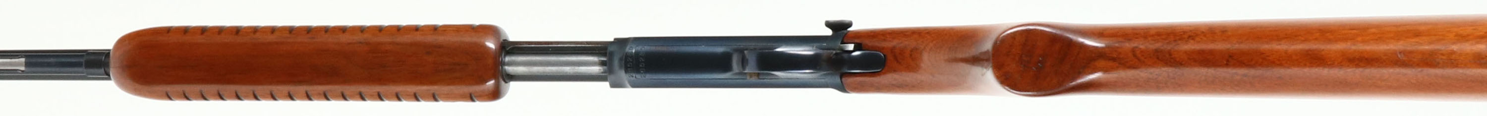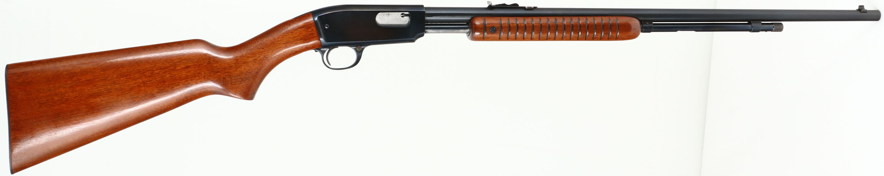 Winchester, Model 61, CAL: .22 S. L. or L.R., MFG: 1959, SN: 265285, Pump Action Rifle, 24'' Round barrel. Grooved receiver. The original flat pistol grip wood stock & grooved forend are excellent, with excellent original fining & a couple of minor contusions. There are two tiny letters lightly scratched into the flat of the pistol grip. The original metal blue finish rates 98% overall. Bore is excellent. The barrel holds the original adjustable rear & small blade front sights. Buttstock carries the earlier checkered metal buttplate. Smooth action. Excellent, original & collectable example.* FFL or C&R Req. - Value: 1000 to 1600