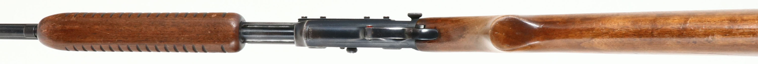 Winchester, Model 61, CAL: .22 S. L. or L.R., MFG: 1951, SN: 176052, Pump Action Rifle, 24'' Round barrel. The original flat pistol grip wood stock & grooved forend are very good, displaying numerous small, contusions, scrapes & scratches to the original finish, which is wearing thin at the wrist & forend. The original metal blue finish rates 80% overall. Bore is excellent. The receiver is fitted with a side mounted Weaver G4 scope, while the barrel holds an adjustable rear & small blade front sights. Buttstock carries the earlier checkered metal buttplate. Smooth action. Likely a good shooter FFL or C&R Req. - Value: 300 to 600