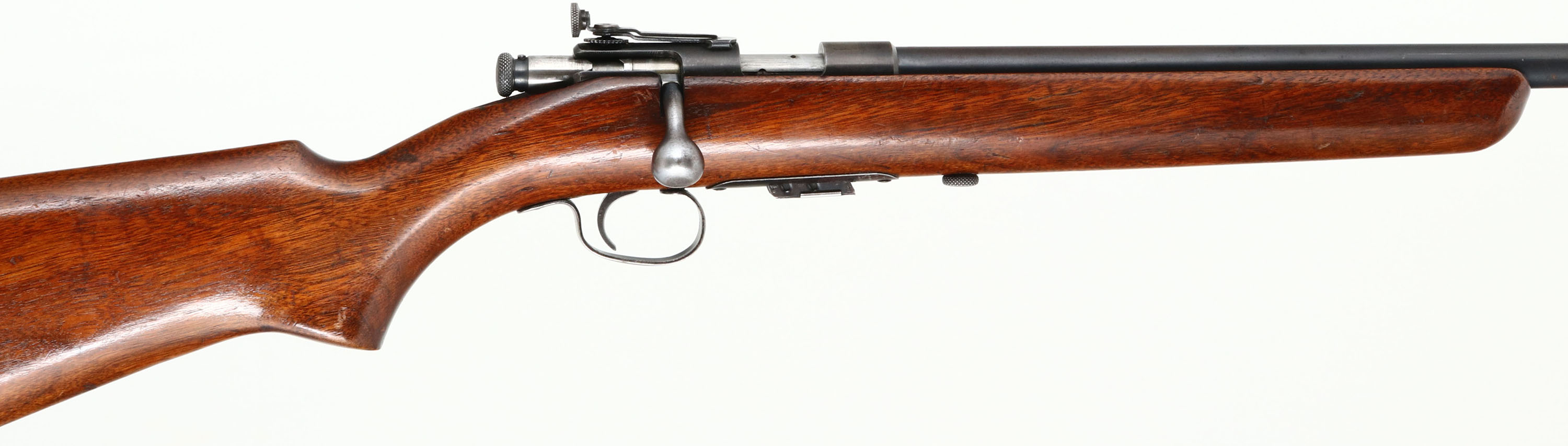 Winchester, Model 69, CAL: 22 S,L, & LR, MFG: 1935-63, SN: NONE, Bolt Action Rifle, 25'' barrel. The original flat pistol grip wood stock is excellent, with very good original finish showing minor thinning & handling marks. The original metal blue finish rates 85% overall. Bore is excellent. The rifle is fitted with the correct Winchester wheel adjusting, aperture receiver sight & ramped hooded front sight. Buttstock carries a Winchester marked plastic buttplate. Comes with original ''Winchester'' ''69'' marked magazine. A very nice original condition & collectible example. FFL or C&R Req. - Value: 300 to 600