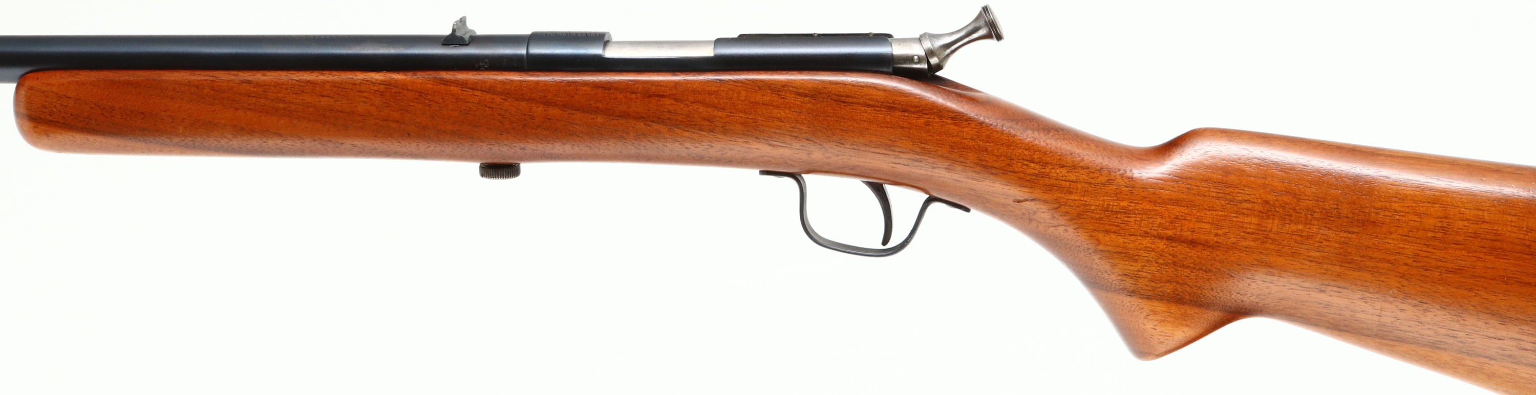 Iver Johnson, Model X, CAL: 22 S.L.LR, MFG: 1930's, SN: NSN, Bolt Action Rifle, 24'' barrel. This rifle has been fully restored. The flat pistol grip wood stock is excellent, having been sanded & refinished. There is a small fill repair on the bottom of the stock, alongside minor dings & handling marks to the finish. The restored metal blue finish rates 99% overall. Bore is excellent. The barrel holds a fixed blade rear sight & blade front sight. Stock carries a smooth metal buttplate. This nicely restored gun presents very well. FFL or C&R Req. - Value: 150 to 250
