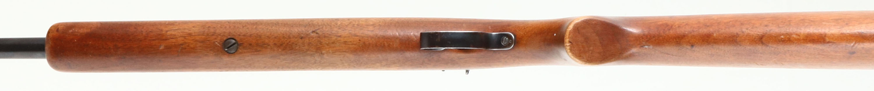 Winchester, Model 74, Marked .22 LONG RIFLE Cal., MFG. 1941, SN: 74283, Semi-Auto Rifle, 24'' Tapered round barrel, This is an example of the early Pre-War variation with a 2'' longer barrel & the blunt forend tip to the stock. The original flat pistol grip wood stock is very good, with several minor scuffs & dings to the thinning original finish. Factory metal blue is 80% on barrel. 70% on the receiver. Bore is excellent. Factory sights. Loads through mag located in the stock. Pre-War variation normally commands a 25% premium. Original semi-auto .22. FFL or C&R Req - Value: 250 to 500