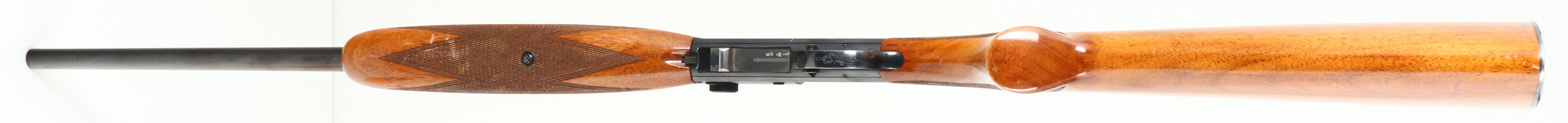 Browning Model SA-22, Grade 1, CAL: .22 LR, MFG: 1963 (Belgium), SN: 3T63839, Semi Auto Rifle, 19'' round barrel. The original checkered & flat pistol grip walnut stocks are excellent, with very few scuffs or dings to the original high gloss finish. The original metal blue finish rates 98% overall. Bore is excellent. The grooved receiver is fitted with a Bushnell Scopechief 4x32 scope, while the barrel carries a flip rear sight & blade front sight. The receiver & trigger guard carry hand engraved floral/swirl pattern, with a border. Metal buttplate. Comes with the original black Browning envelope packet, with owners manual & other paperwork inside. FFL or C&R Req - Value: 600 to 1000