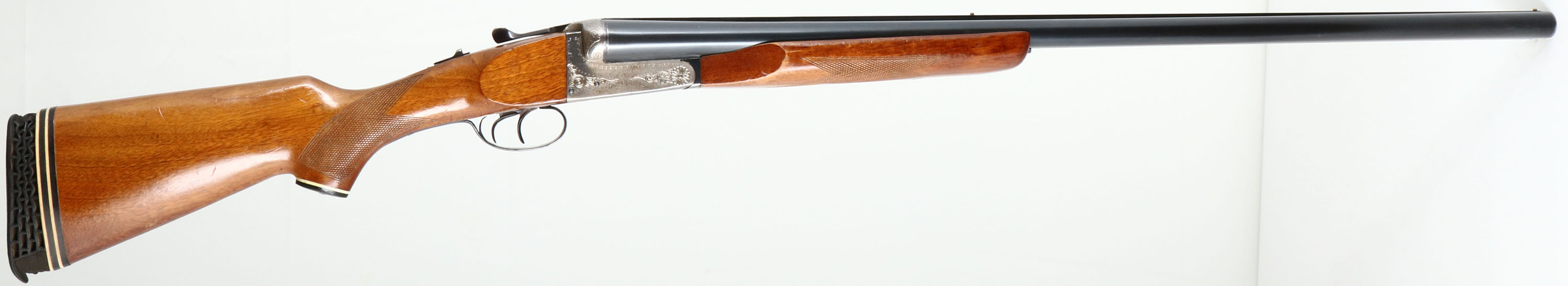 Tradewinds, Model G-1032, CAL: 10GA, MFG: 1960's-70's, SN: 162130, Break Action SxS Shotgun, Choke: F/F, 32'' barrels. The original checkered & capped pistol grip stock, with beavertail forend are very good. There are contusions, scrapes & dings, with thinning finish at the carry points. The restored metal blue finish on the barrels rates 95% overall, with minor blemishes & speckling. The receiver is fully worn to gun metal grey, with light spotting & speckling throughout. The receiver, barrel ends, break lever, trigger guard & screws all display simple ornamental engraving. Bores are very good, they have striations consistent with normal use. The solid, matted rib holds a mid rib & front bead. Stock carries a worn, ventilated black rubber recoil pad. Double triggers. LOP: , DAH: , DAC: . FFL or C&R Req. - Value: 250 to 450