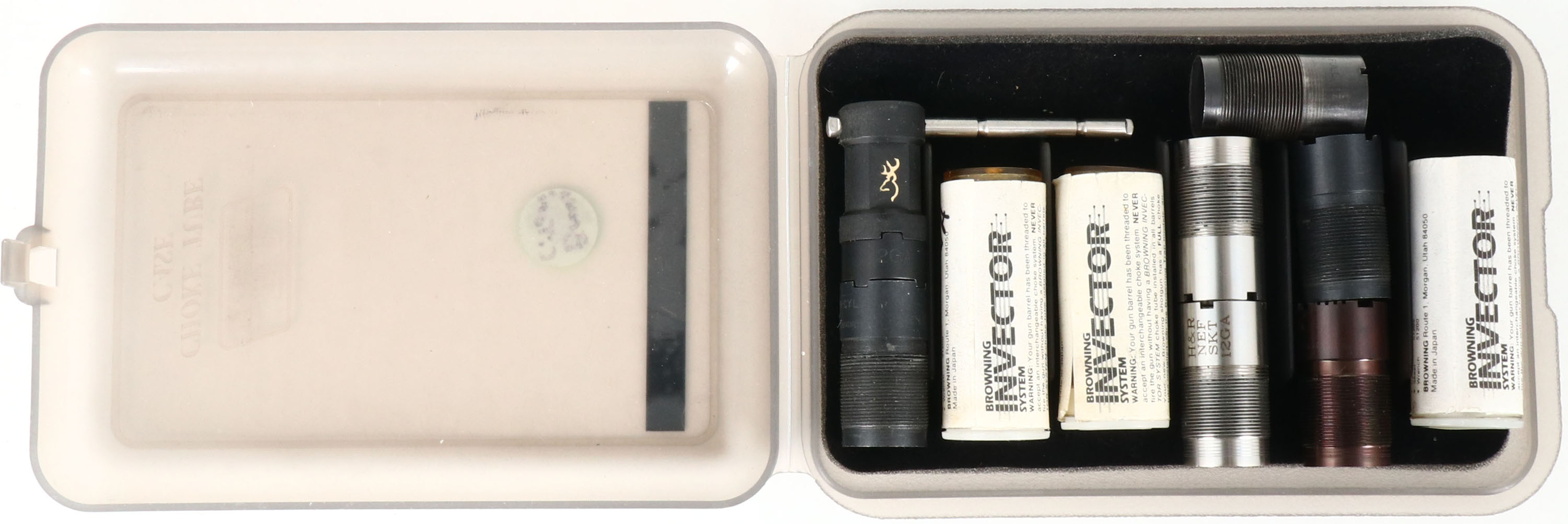 Browning, Citori, CAL: 12GA, MFG: 1986, SN: 24574PT153, Break Action O/U shotgun, Choke: Invector Choke System, 28'' Magna Ported barrels. The original, checkered flat pistol grip wood stock is excellent. There are scratches, scrapes & dings to the high gloss finish. The metal blue finish rates 95% overall. Bores are excellent. The ventilated & matted rib holds a small steel mid-rib bead & front bead. Browning ventilated brown rubber recoil pad. Comes with a set of Invector Chokes in a plastic hard case. A quality utilitarian shotgun. LOP: 14 1/4'' overpad, DAH: 1 3/4'', DAC: 1 3/16''. FFL Req. - Value: 700 to 1200
