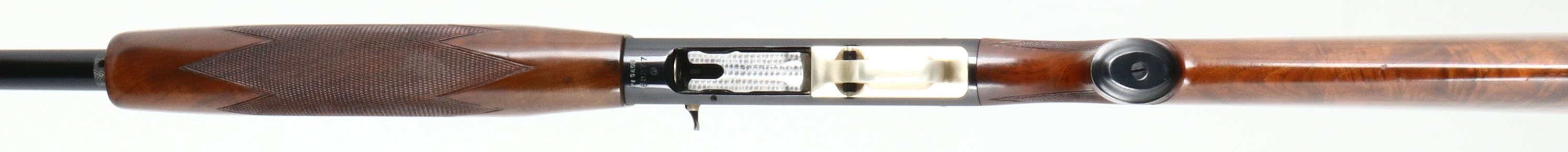 RARE PIGEON GRADE, Winchester Model 59 WIN-LITE, CAL: 12 GA, MFG: 1960-65, SN: 68277, Semi-Auto Shotgun, Choke: Multiple, 26'' Winchester Win-Lite steel/fiberglass barrel. The word ''PIGEON'' is engraved on the underside of the receiver. The alloy receiver is inscribed with hunting scenes, border accent engraving. The deluxe checkered & metal capped pistol grip wood stocks are excellent. The stock displays fantastic feathered & ripped grain, with few minor handling marks to the original finish. The factory metal finishes on the barrel & receiver rate 98% overall, with very little handling wear. Bore is excellent. Barrel is fitted with a single front bead. Buttstock carries a factory Winchester buttplate. Gold tone trigger guard. LOP: 14''. A wonderful & rare Pigeon grade Win-Lite. Very collectible.* FFL or C&R Req. - Value: 2000 to 4000