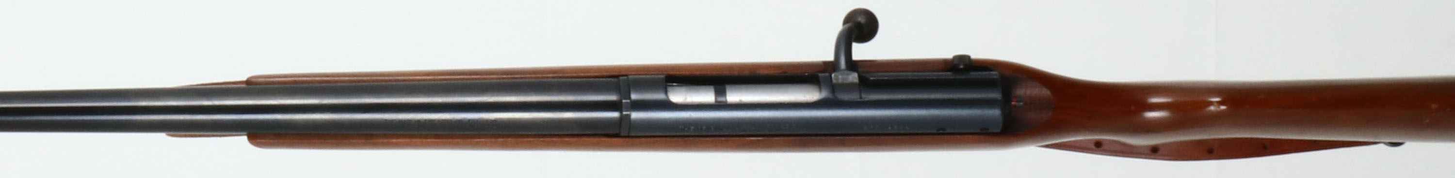 Marlin, Model 55 '' The Original Marlin Goose Gun'', CAL: 12 GA, MFG: 1954-64, SN: 25709264, Bolt Action Shotgun, RARE 36'' barrel. The original flat pistol grip stock is excellent. There are scrapes & scratches to the original finish. There is an open stud hole ahead of the current sling stud. The metal blue finish on the barrel rates 97%, with some light rust speckling & one small areas of pitting on the underside. The receiver rates 98%, with numerous small dings. The receiver is also tapped & drilled on the left side, with two open screw holes. Bore is excellent & bright. The barrel holds a single front bead. Stock carries a ventilated black rubber recoil pad. Sling loops & leather sling. Comes with extra mag. Gold tone trigger. A nice condition original Marlin Goose Gun. FFL or C&R Req. - Value: 500 to 1000