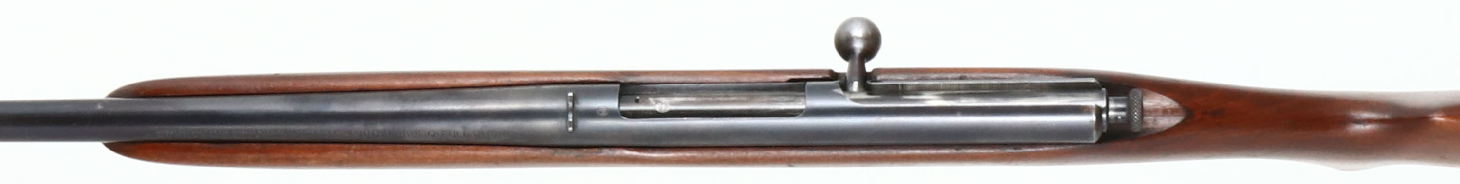Winchester, Model 41, 410 GA., MFG. 1920-34, SN: None, Bolt action single shot. 2 1/2'' FULL, 24'' barrel. The original flat pistol grip wood stock is excellent & solid, with several minor finish level scuff & scratches to the original finish. The original metal blue finish rates 90%, with additional wear to the trigger guard. Bore is excellent. Single front bead sight. Original buttplate. Only 22,146 produced. A very nice & original little .410 shooter. FFL or C&R Req. - Value: 400 to 800
