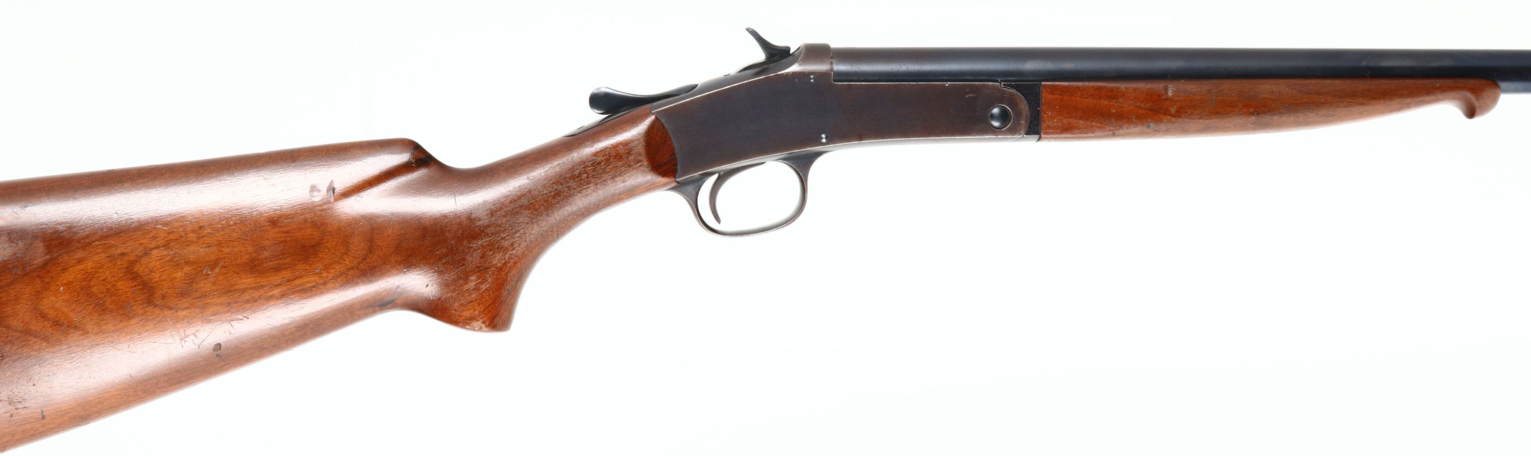 Winchester, Model 20, CAL: 410, MFG: 1919-31, SN: 17401, Break Action Single Shot Shotgun, Choke: F, 26'' barrel. The original flat pistol grip stock, with schnabel forend are excellent. There are contusions, scrapes, dings & a small inlay repair on the tip of the comb. The repair area has been lightly sanded, with added finish. The original finish is wearing thin & flaking at the carry points. The metal blue finish on the barrel rates 90%, beginning to tone to a brown patina. The receiver rates 80%, toned to a mix of remaining blue, brown patina & carry points worn to metal grey. Bore is excellent & bright, with intermittent haze. The barrel holds a single front bead. Stock carries a Winchester checkered black plastic buttplate. LOP: 13 1/4''. FFL or C&R Req. - Value: 250 to 500