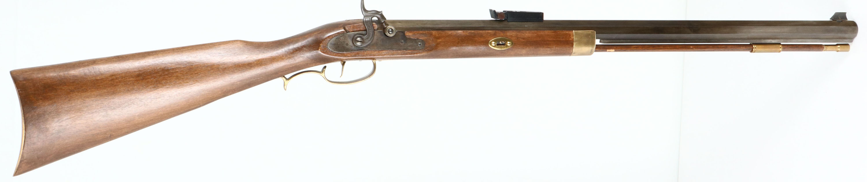 Connecticut Valley Arms Inc., Frontier Rifle, Cal: .50, MFG: 1991, S/N: 91 762949, Percussion Muzzleloader, 24'' barrel. The straight wrist wood stock Is excellent with little to no wear. The metal was not blued from the factory. Left side of barrel is marked ''CONNECTICUT VALLEY ARMS. INC. FRONTIER RIFLE'', ''MADE IN SPAIN BLACK POWDER ONLY .50 CALIBER''. Bore is excellent, bright with strong rifling. Brass buttplate, ramrod present. Muzzleloader, No FFL Req. - Value: 100 to 300