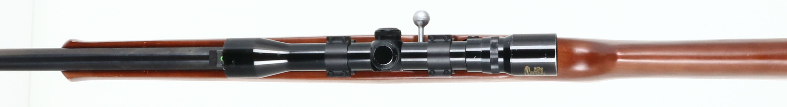 J. Sports, Legacy Model, CAL: 50, MFG: Modern, SN: 0003864, Bolt Action Rifle, 22 7/8'' barrel. The flat pistol grip wood stock is excellent, displaying minor nicks & dings to the finish. The metal blue finish on the barrel rates 99% overall. Bore is excellent & bright, with strong rifling. The receiver holds an All-Pro 4x32 Full View scope. The barrel holds an adjustable green fiber optic rear sight & red fiber optic blade front sight. Stock carries a ventilated black rubber recoil pad. Ram rod & sling studs are present. Comes with a camo cloth sling. Black Powder, No FFL Req. - Value: 100 to 300