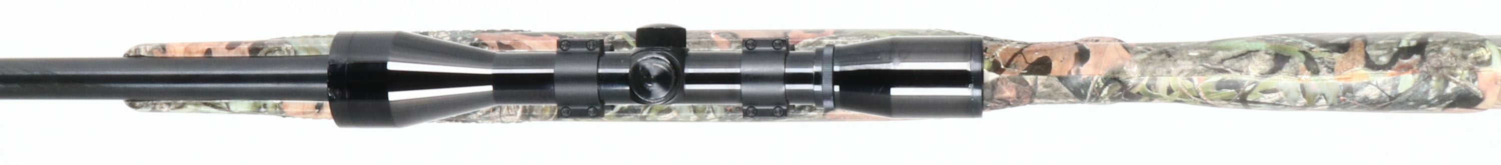 Connecticut Valley Arms, Kodiak Magnum, CAL: 45, MFG: N/A, SN: 61-13-065102-04, Break Rolling Breech Muzzleloader, 28'' barrel. The checkered, dual cheeked Monte Carlo style synthetic stock, with Mossy Oak Obsession camo pattern is excellent, displaying minor handling marks. The metal blue finish rates 95% overall, with scuffs & scrapes. Bore is excellent & bright, with crisp rifling. The receiver holds a Bushnell Sportview scope & the barrel holds an adjustable green fiber optic front sight & red fiber optic front sight. Integral sling privisions & ram rod present. A ready-to-go blackpowder rifle. Black Powder, No FFL Req. - Value: 100 to 300