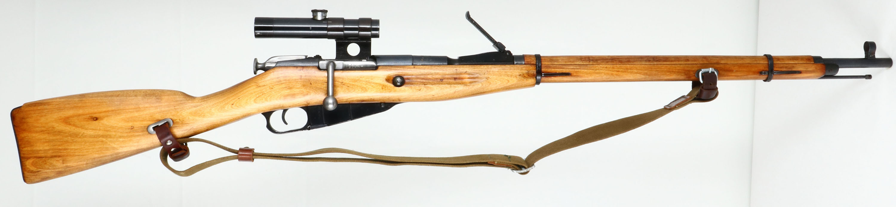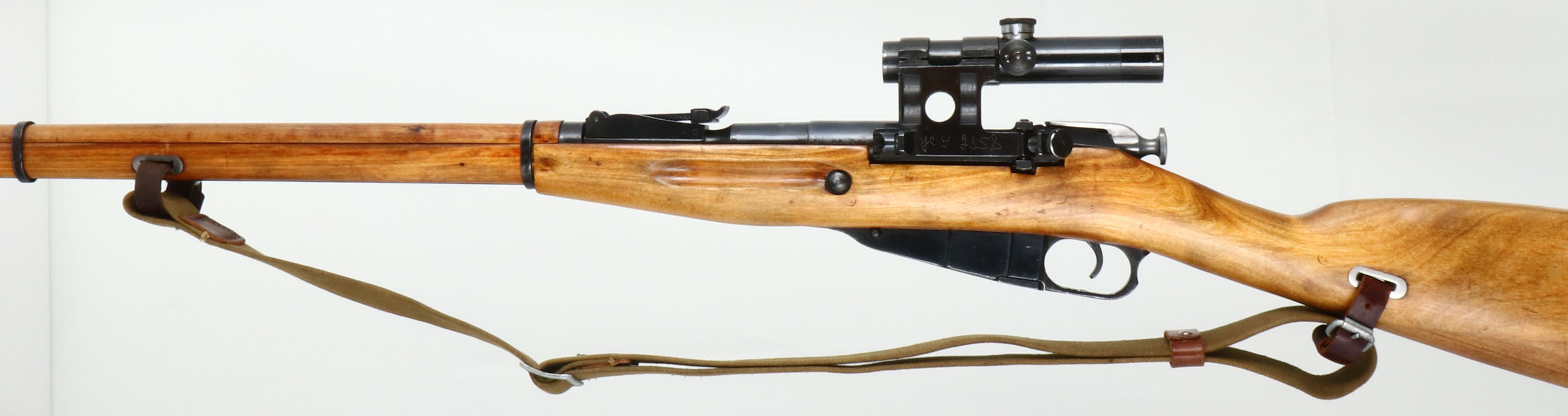 Izhevsk, Model: M91/30 PU Sniper, Cal: 7.62x54mmR, MFG: 1943, S/N: 2358, Bolt action rifle, 28 1/2'', the straight wrist wood stock is very good, stock appears to have been lightly sanded & lightly oiled, light nicks, dings, dents, scratches, & wear from use/age, faint cartouches all over stock. The metal finish rates 90% overall with light scratches. Top of barrel is marked with factory stampings, S/N, ''1943r'', ''7H00'', & other proof marks, left side of receiver is marked, ''7H 00 2358'', end of barrel is stamped with importer marks, scope mount is marked, ''yey 2358'', S/N matched bolt, magazine floor plate, & buttplate. Bore is excellent, bright with strong rifling. Post front sight with protective globe, tangent U-notch rear sight marked 1 to 20, Correct PU scope. Metal buttplate, has cleaning rod, has period correct sling, comes with lens cover & scope cover. FFL or C&R Req - Value: 800 to 2000