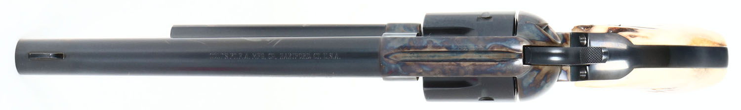 BOXED Colt, Single Action Army (P1870), CAL: .45 COLT, MFG: 1978-93, SN: SA11750. Single Action Revolver, 7 1/2'' barrel. The top of the barrel is marked ''COLT'S PT F.A. MFG. CO. HARTFORD CT. U.S.A.'', The left side of the barrel is marked ''COLT SINGLE ACTION ARMY 45''. The left side of the frame is marked with the Rampant Colt logo above the trigger guard & next to patent dates. The full SN can be found on the frame. The fantastic original stag & Rampant Colt medallion grips are excellent. The factory metal blue finishes rate 99%. The case-hardened frame displays vivid case-colors. Bore is excellent & bright. The barrel holds a blade front sight. Comes in the original factory wood grain box, with Colt ''Congratulations'' letter, hang tag, Owner instruction booklet & other pamphlets. FFL Req. - Value: 1500 to 2500