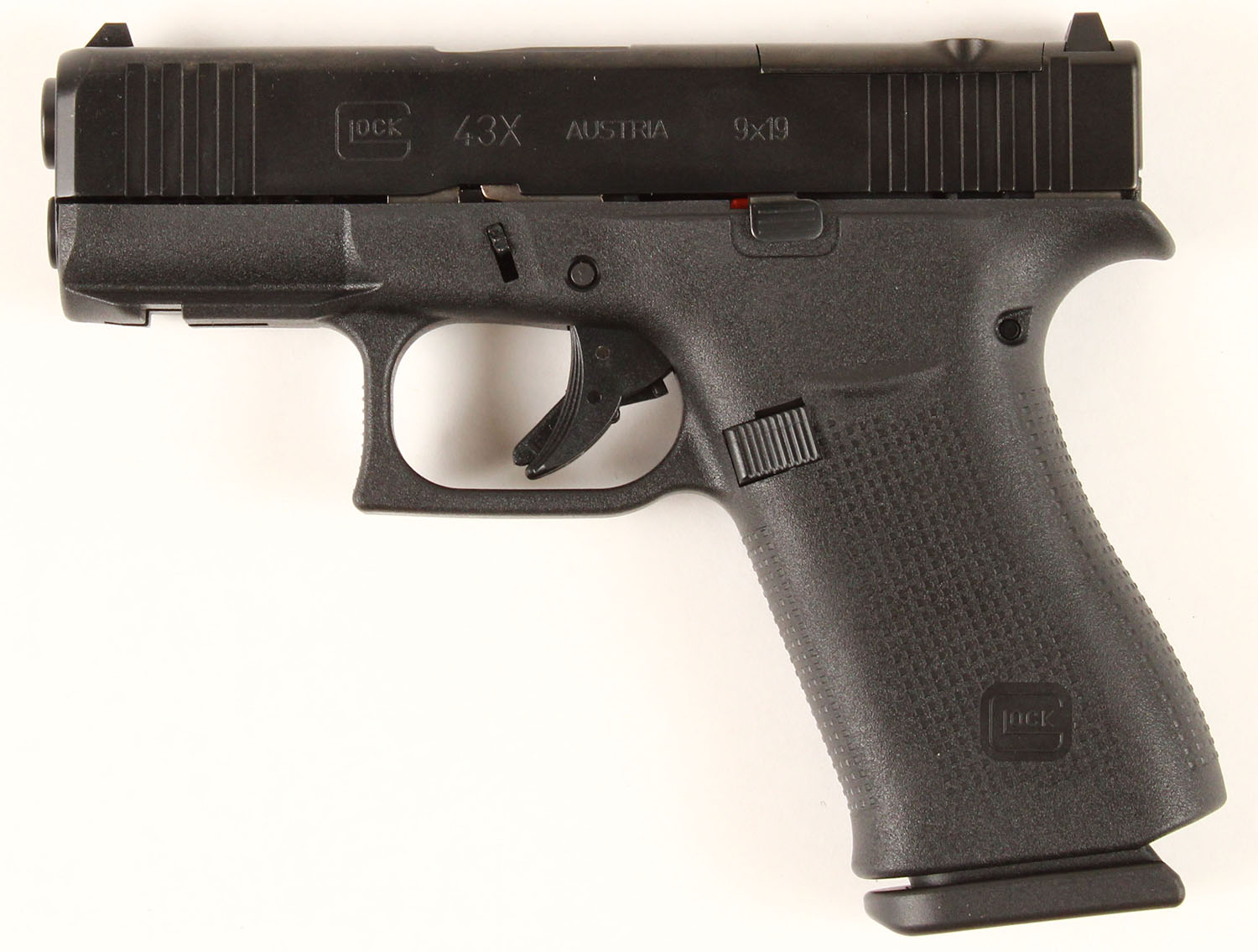 NEW CASED, Glock, Model 43X Gen 5 MOS, CAL: 9mm, MFG: Modern, Semi Auto Pistol, 3 1/2'' barrel. The textured polymer grip & frame are mint. The factory matte black finish is mint. Bore is mint. Factory square notch rear sight & single dot front sight. Comes in factory hard case, with owners manual, MOS sheet, lock/key, cleaning rod/brush, grip attatchments, (2) 15rd mags & speed loader. NOS. FFL Req. - Value: 450 to 550