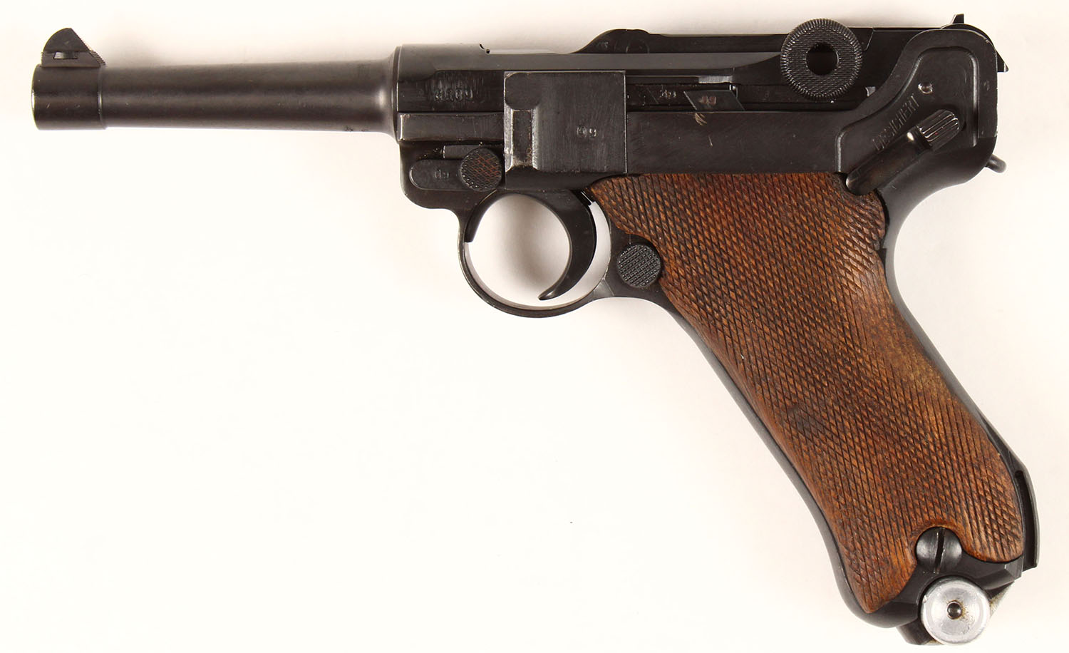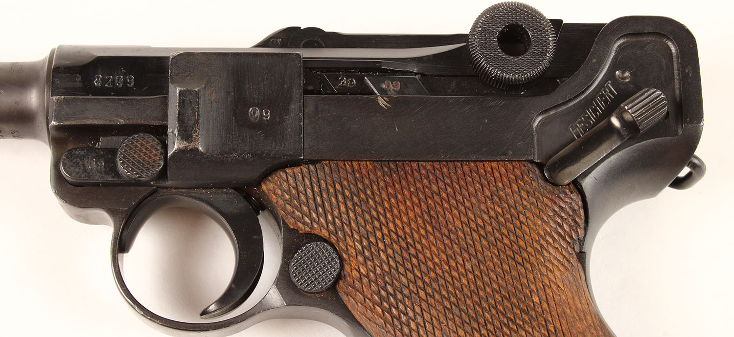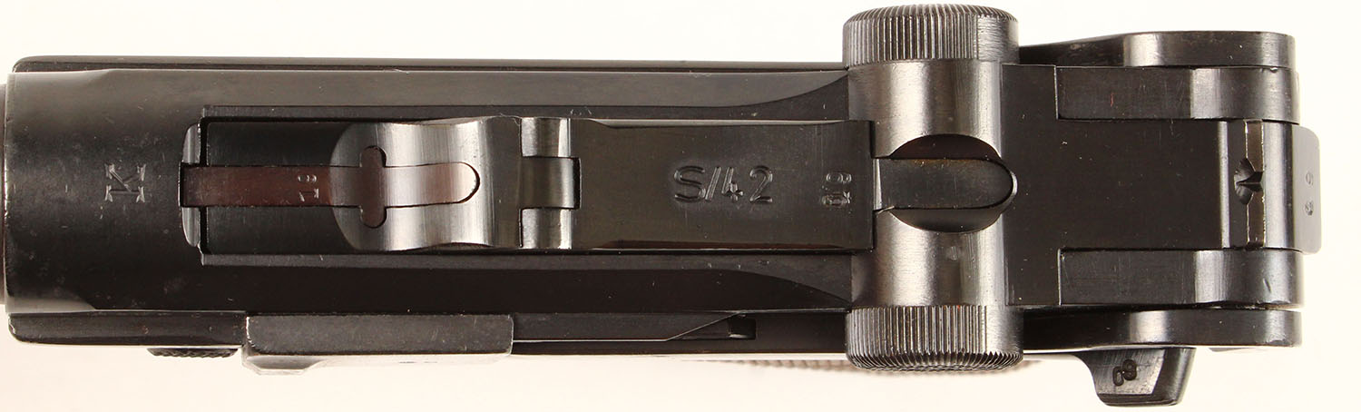 RARE & DESIREABLE, Early Nazi Mauser ''K-Date'' Military Luger, CAL: 9mm, MFG: 1934, SN: 8209, Semi Auto Pistol, 4'' barrel. The ''K-Date'' P.08 Lugers were manufactured by Mauser for the German Army in 1934 & represent the very first true German Army contract pistol. The ''K'' was developed as a secret wartime code by the Mauser factory to conceal the fact that Germany was rearming in violation of the Treaty of Versailles. The date of manufacture was coded to keep it secret. Approximately 10,500 produced. The full SN can be found on the front of the frame & left side of the receiver. The last two digits of the SN (09) can be found in multiple locations throughout the pistol. The number (19) can be seen on the extractor & (39) can be found on the left side of the breechblock. There appear to be some factory overstamps. The bottom of the barrel has a crossed out (2039) with ''8,83'' below it. A gothic style ''S'' can be found on the left side partially behind the side plate, on the right side of the breechblock above the frame & on the forward right of the receiver above the early 1st variation German military proof marks. The left side of the barrel also carries the early 1st variation German military proof mark. The upper position of the safety is marked ''GESICHERT'' & can be seen when the safety is in the lowered position. The checkered walnut grips are excellent & solid. The edges of the grips' checkering has been worn smooth from use. The metal blue finish rates 95%, with some areas that appear to be touched up. Bore is excellent, with minor speckling amongst proud rifling. The rear toggle link carries a fixed notch rear sight & the barrel has a blade front sight. Non-matching SN magazine. These early Wehrmacht P.08 pistols have an extremely low survival rate as almost all saw extensive service use on the Eastern front. This is an opportunity to obtain a good representative of a scarce ''K-Date'' Luger pistol. FFL or C&R Req. - Value: 1500 to 3000