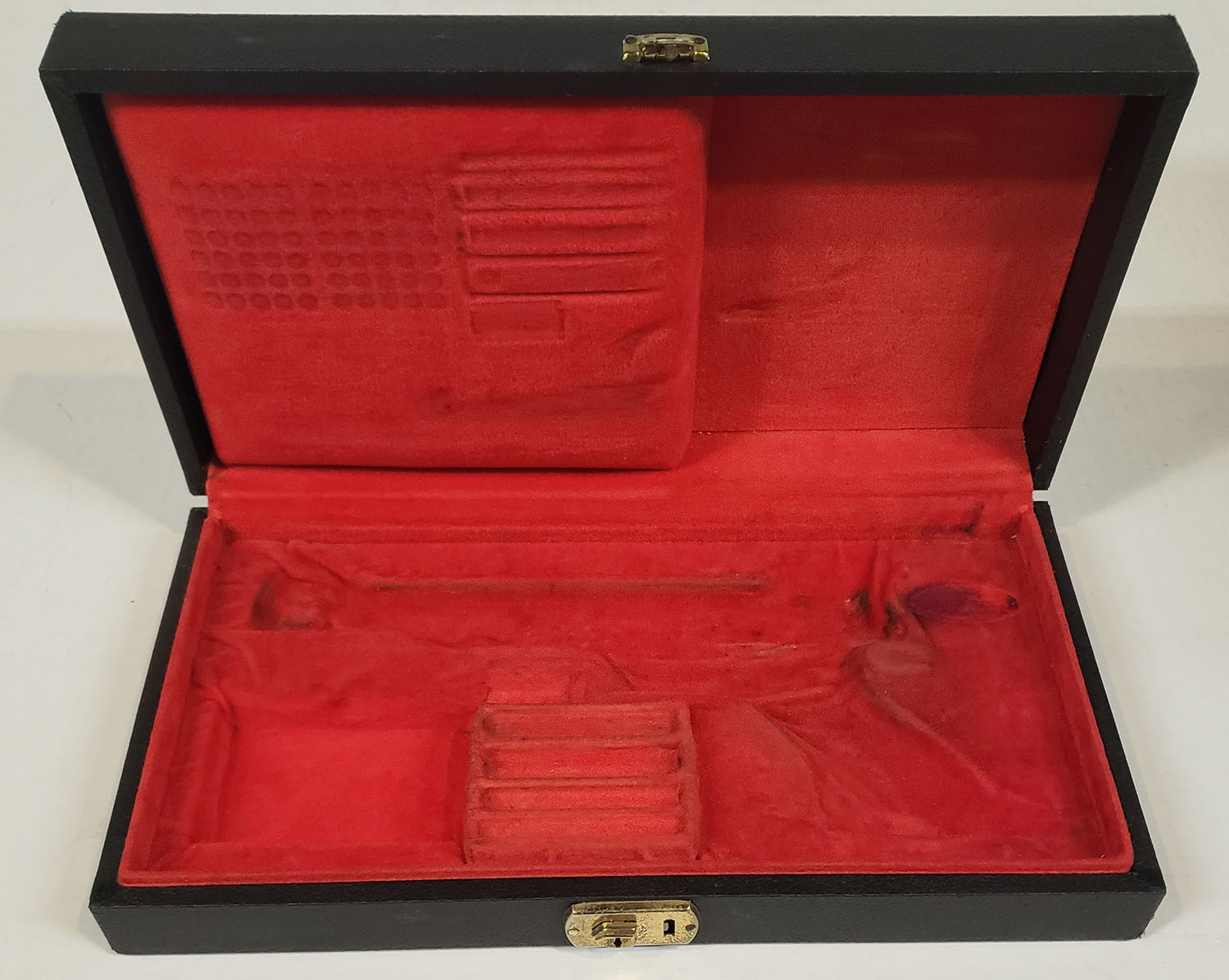 Factory Browning Metalist display case. Has brass components & a red velvet interior. Some wear at exterior corners & light soiling on the interior. Overall condition is very good. - Value: 100 to 200