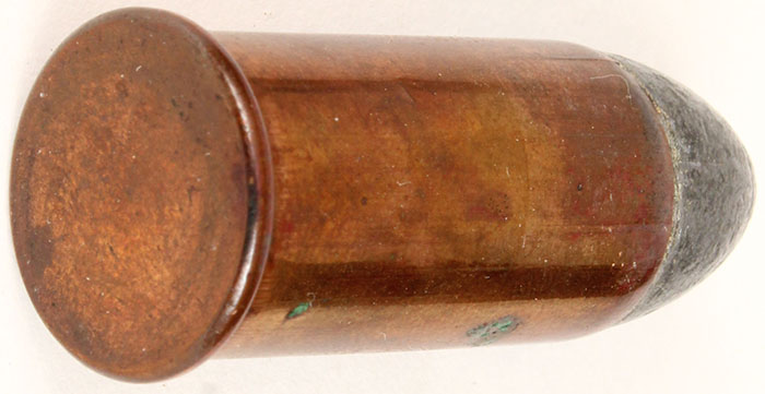 58 Musket. HNS, copper case . Case Length: 1.20'' Bullet Dia.: .591 Lead point. Grade: Very Good ++ - Value: 20 to 40
