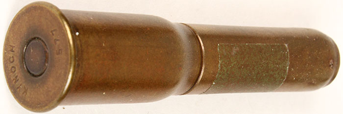 VERY SCARCE H/S= ''KYNOCH 577'' 490 BSA. Experimental police 2 7/8'' CL. Buck shot load, flat copper primer, clear lacquered Grade: Excellent + - Value: 40 to 100