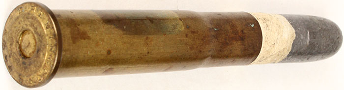 44-105 x 2-7/16 bottleneck Remington Special. Raised HS:''E. REMINGTON & SONS'', flatnose paper patch lead. Grade: Very Good ++ - Value: 60 to 100