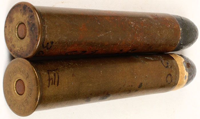 Lot of 2 .577 x 2.75''. (1) HS ''ELEY . 577 . LONDON .'', rn lead w/ copper tube. (2) HS ''ELEY . 577 . , rn lead w/ copper tube. Grade: Very Good ++ - Value: 10 to 50