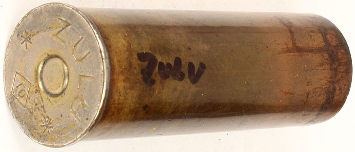 H/S: ''ZULU'' 10 ga, empty brass shotshell, 2 11/16'' OAL. Grade: Very Good + - Value: 6 to 60