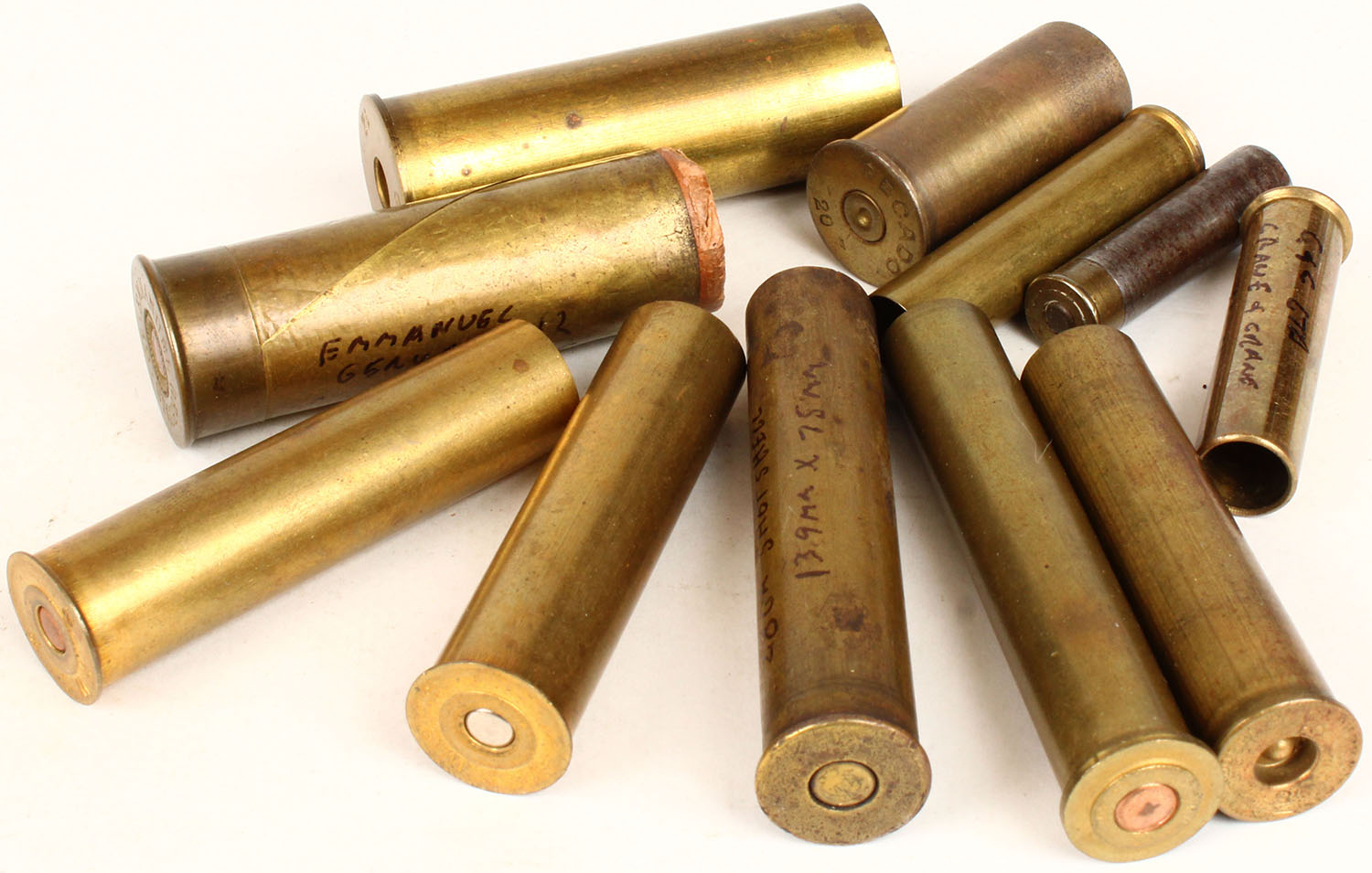 | Lot of 11 empty brass shotshells. Grade: Very Good ++ - Val...
