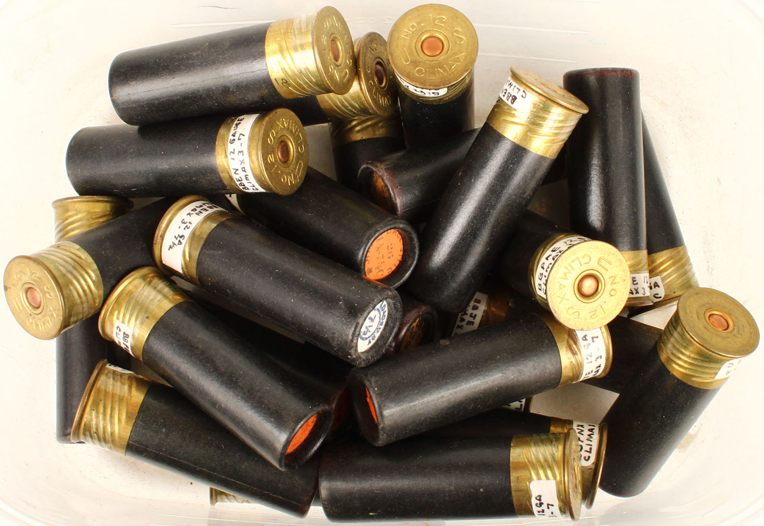 | Large lot of loaded paper shotshells, 12 gauge. Grade: Excellen...