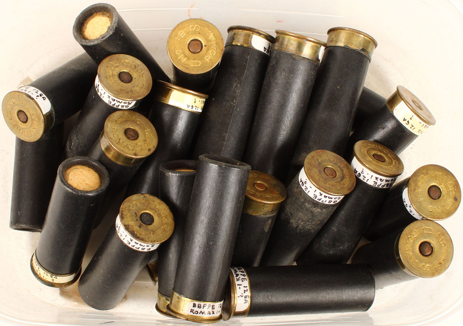| Large lot of loaded paper shotshells, 12 gauge. Grade: Excellen...
