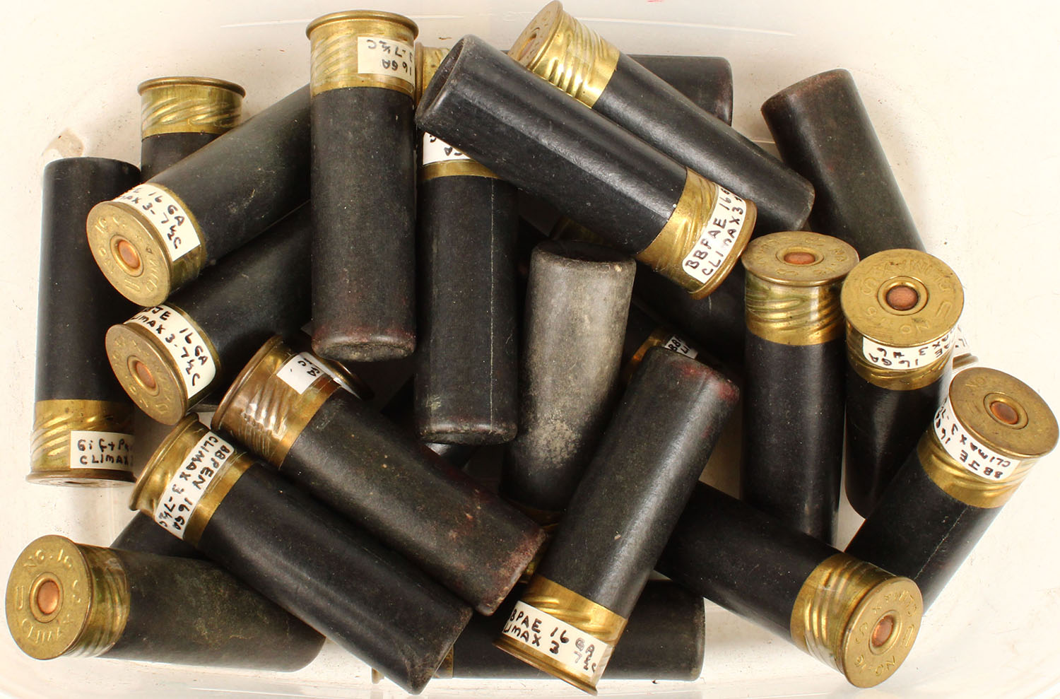| Large lot of loaded paper shotshells, 16 gauge. Grade: Excellen...