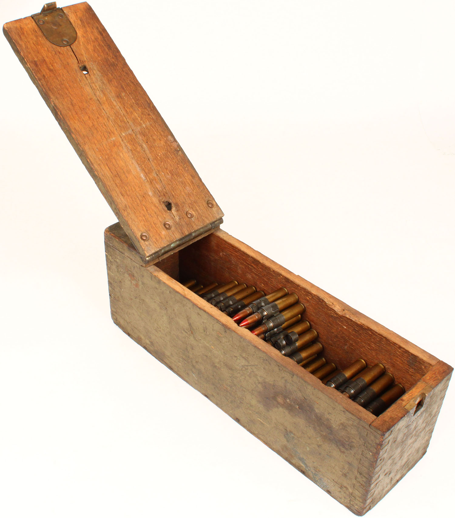 Military ammo crate Full of Approx. 100 Rds. Of linked red tip Surplus 30-06, ammo is very good. Grade: Very Good + - Value: 70 to 160