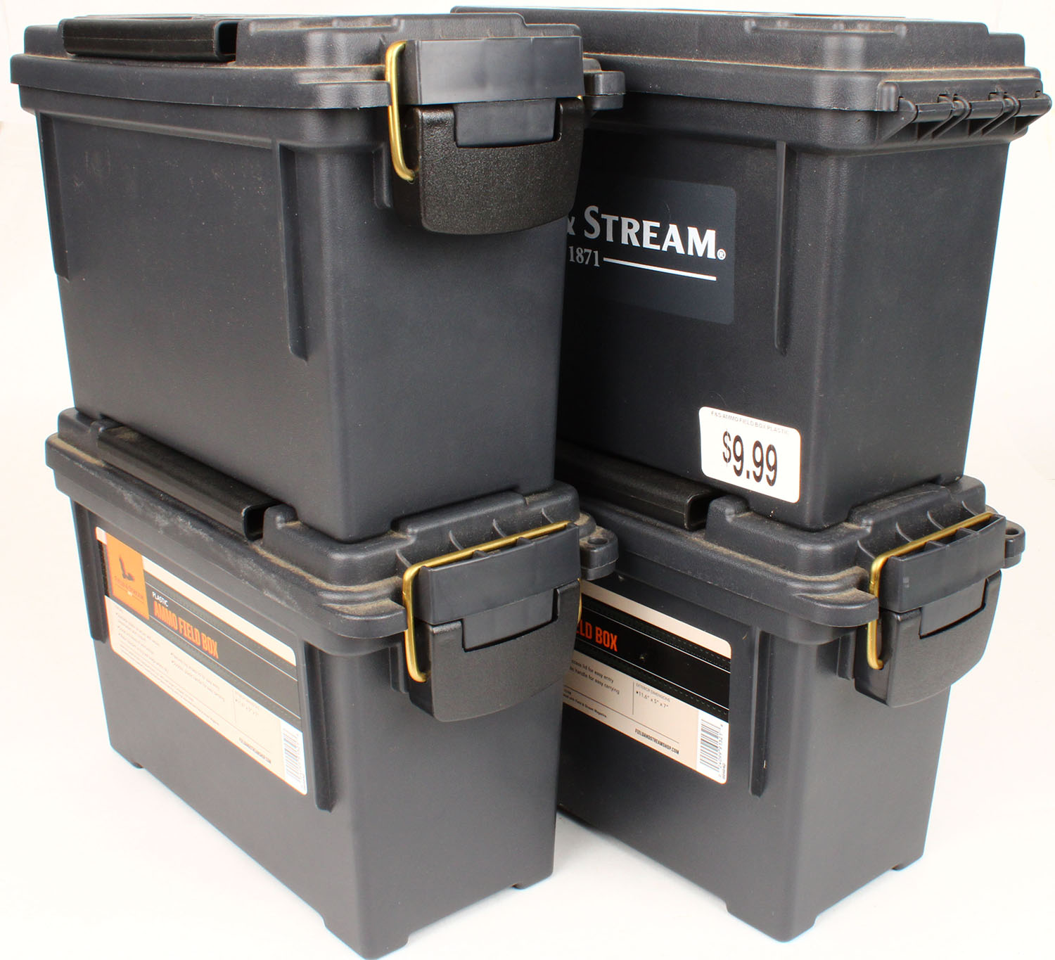 | Lot of four plastic ammo cans, all empty. Grade: Excellent - ...