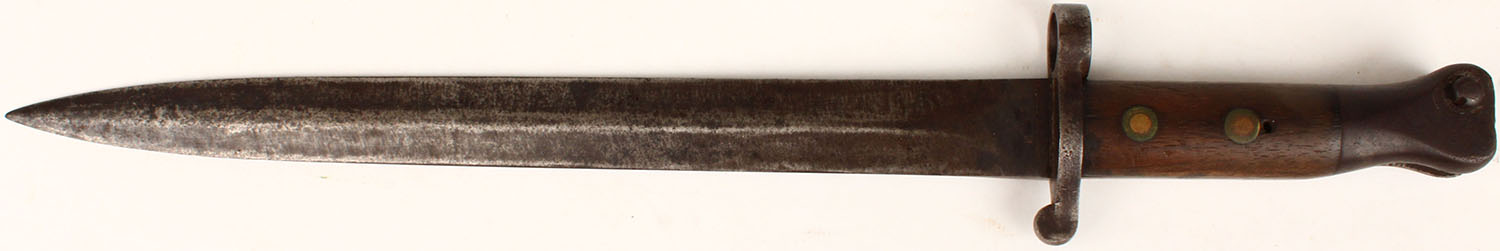 Wilkinson, Pattern 1888 Mk1 type 2 bayonet, right side of blade is marked, crown over ''VR'', ''11 97'', ''WILKINSON LONDON'', left side of blade has proof marks, blade has light wear & shows patina. Grade: Very Good + - Value: 50 to 300