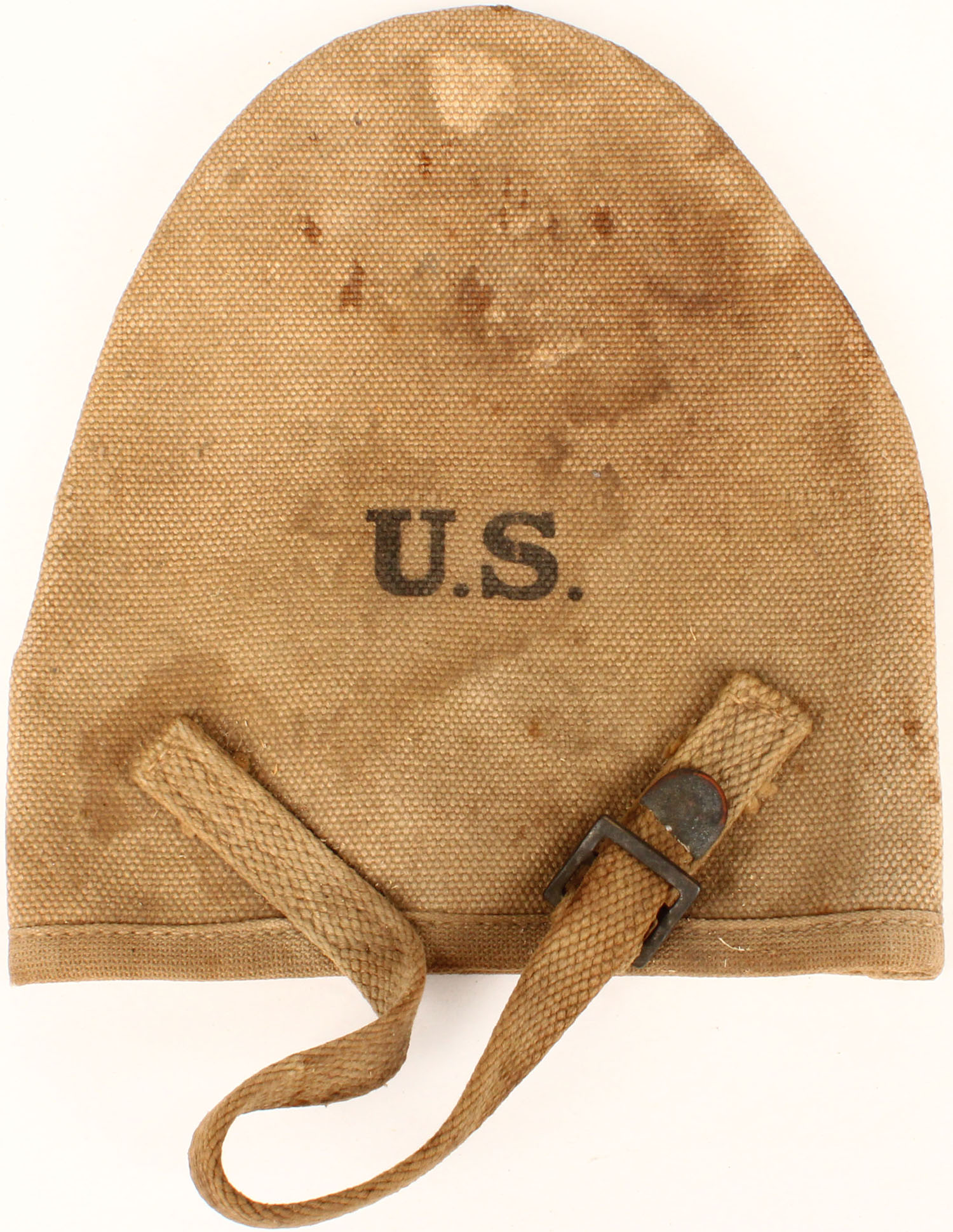 US, M1910 Tan Shovel Cover/carrier dated 1918, H&P Manufacture, cover has small hole on back, satins, & wear. Grade: Very Good - Value: 30 to 60