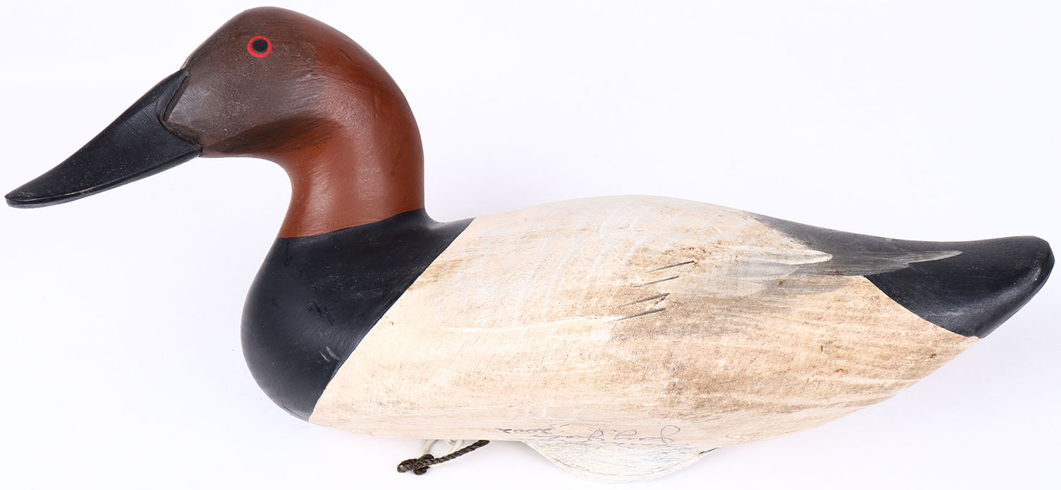 Canvasback Drake by Charlie Pierce, painted eyes, solid wood, original paint, structurally excellent. Grade: MINT - Value: 50 to 100