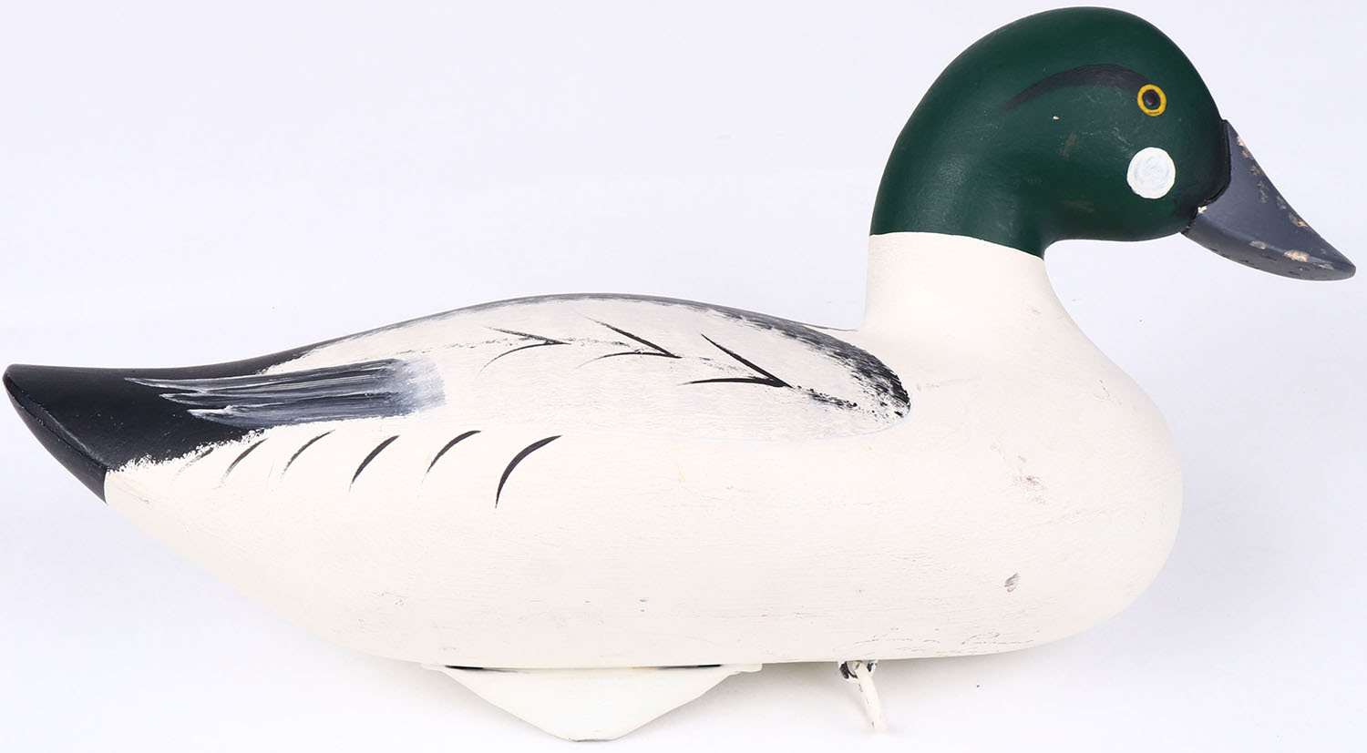 Goldeneye Drake by Jim Pierce & Son Decoys Havre de Grace MD, painted eyes, solid wood, original paint, structurally excellent. Grade: Excellent + - Value: 50 to 100